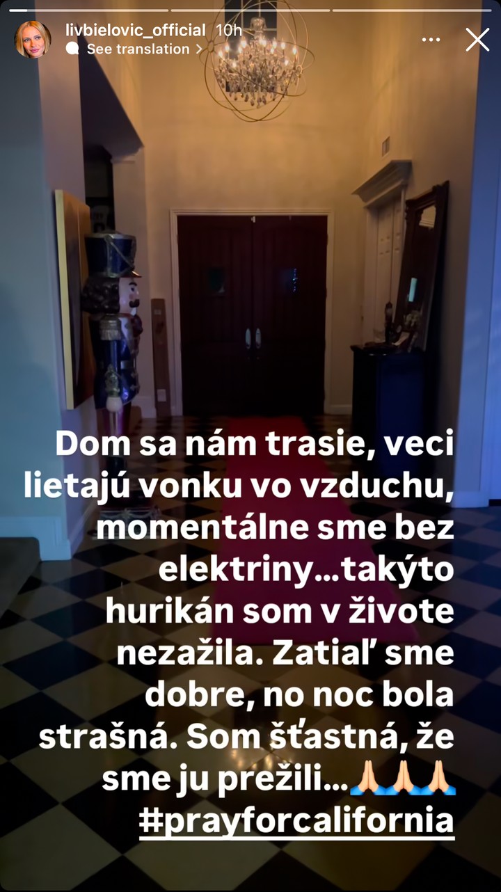 Na svojom Instagrame zdieľala informácie o stave v Los Angeles, nakoniec dodala, že je v poriadku.