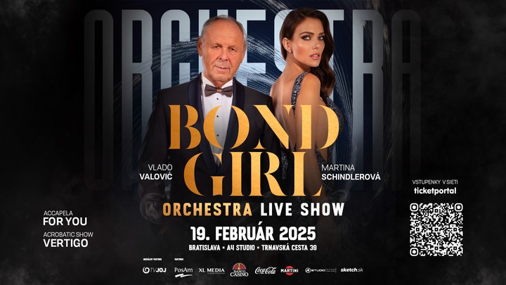 BOND GIRL ORCHESTRA LIVE SHOW je veľkolepá šou, ktorá vás už 19. februára v Bratislave vtiahne do sveta Jamesa Bonda a prinesie nezabudnuteľné spomienky. Blížiaci sa koncert nemá na Slovensku obdobu, tvorcovia sa inšpirovali dramaturgiou koncertov v zahraničí, napríklad vyhľadávanými vystúpeniami v mekke zábavy Las Vegas. Pripravte sa na noc, ktorá spojí špičkovú hudbu, dramatické výkony a luxusné detaily v podaní tých najlepších. Vstupenky sú k dispozícii v sieti Ticketportal.