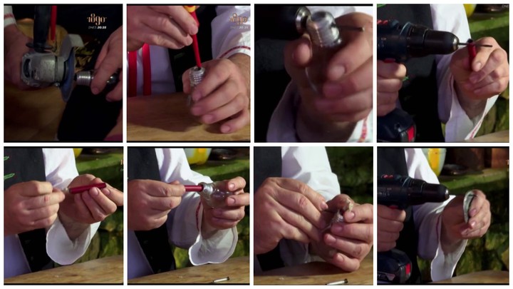 Najprv si opatrne odpíľte vrch objímky, aby ste sa dostali do vnútra žiarovky. Keď sa vám to podarí, skrutkovačom vylomte svetelné zariadenie a cez vytvorenú dierku ho vysypte von. Vŕtačkou vyvŕtajte vo vrchnej polovici objímky diery na oboch stranách. Neskôr budú slúžiť na upevnenie skrutkou. Pripravte si kovovú trubičku a tiež do nej navŕtajte dve dierky oproti sebe. Do takto upravenej trubičky zasuňte knôt a napokon celú trubičku vložte do žiarovky. Trubičku a objímku zoskrutkujte. Potom si pripravte kovový pliešok, do ktorého taktiež navŕtajte dierku. Zoskrutkujte spolu pliešok a žiarovku s trubičkou. Na záver nalejte do žiarovky lampový olej a zapáľte knôt. Hotovo! Originálna lampa je na svete.