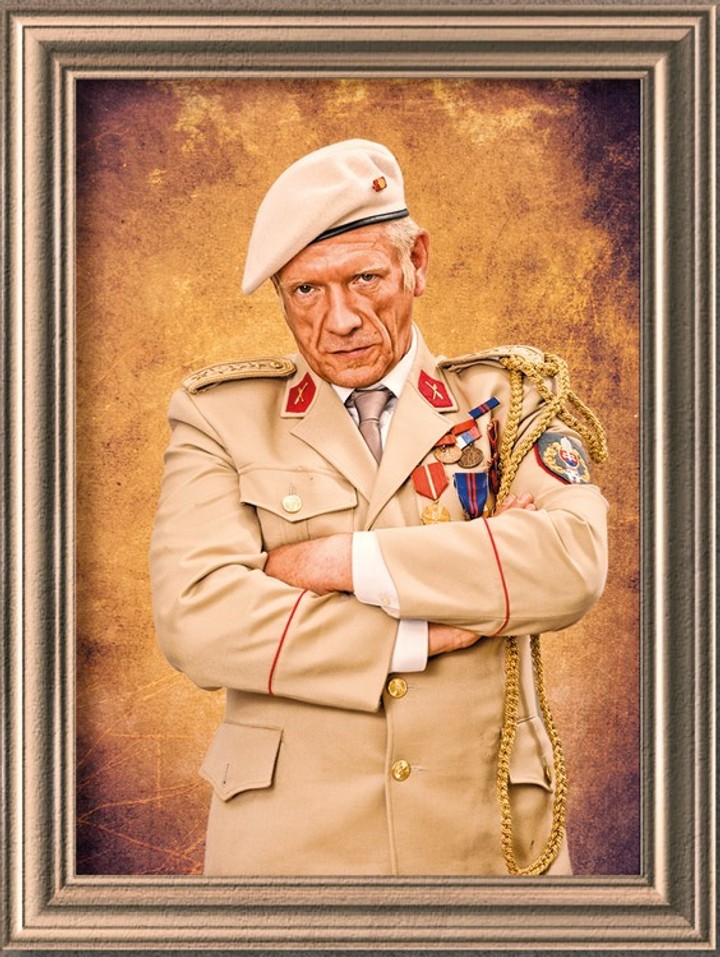 Vojak telom aj dušou, ktorý neznáša tučných ľudí a nenávidí preto aj ministra zdravotníctva. Chodí oblečený len v uniforme a všetkým ukazuje svoje výložky, ktoré rád bozkáva. Túži sa stať generálom a doteraz ním nie je len preto, že sa kompetentní boja, čo všetko by mohol ako generál spôsobiť. Minister sa totiž netají túžbou viesť raz slovenskú armádu do boja a zaviesť povinnú vojenskú službu. Zároveň je posadnutým konšpirátorom, ktorý všade a vo všetkom vidí možné ohrozenie a preto je neustále v strehu. Jeho najväčším koníčkom je odpočúvanie a špehovanie, má „napichnutý“ celý úrad vlády. Jeho špecialitou je tiež zvítavanie sa s kolegami, ktoré odpozoroval od Brežneva - všetci sa k nemu boja čo i len priblížiť, namiesto obyčajného podania ruky totiž všetkých vášnivo vybozkáva. Spôsobuje jedno diplomatické faux pas za druhým a nechtiac vyvoláva politické škandály.
