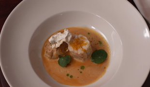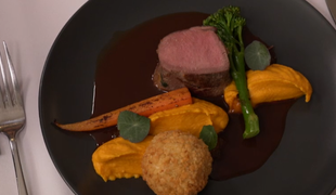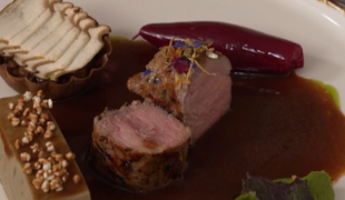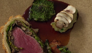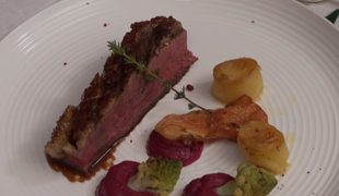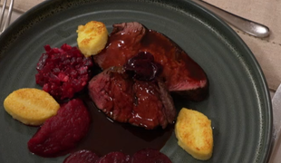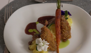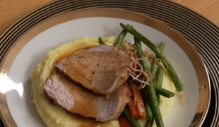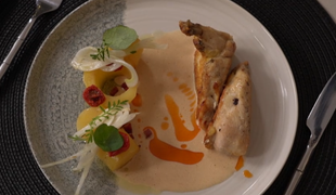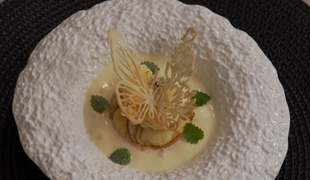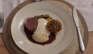 Hlavné jedlo: Prepelica so zemiakovou kašou a s hľuzovkou